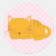 Le design adorable présente une douce illustration d'un chaton à tabby orange qui fait une sieste sur un mignon coeur rose ou bleu et un arrière - plan motif empreinte de patte.