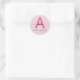 Sticker Rond Chaud rose moderne Script Girl Monogramme Nom
