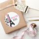 Sticker Rond Chaud rose monogramme Damask Tour Eiffel Mariage