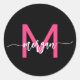 Sticker Rond Chaud rose noir moderne Script Girl Monogramme Nom