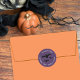 Joints éffrayants d'enveloppe d'Halloween violet comportant trois chauves-souris volantes. Personnalisez-les avec le nom et l'adresse de votre famille à l'aide des champs de modèle appropriés. © ArianeC Illustrations-Tous droits réservés
