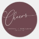 Sticker Rond Cheers Minimal Burgundy Script personnalisé mariag