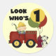Sticker Rond Chemises et cadeaux Fireman 1er anniversaire