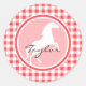 Sticker Rond Cheval blanc ; En vichy rouge et blanc