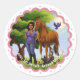 Sticker Rond Cheval châtaigne et fille