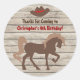 Cheval silhouette brun personnalisé avec un casquette cowboy sur une grange bois arrière - plan fête d'anniversaire western merci autocollants pour les garçons. ~