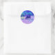 Sticker Rond Cheval noir violet dans le champ Arc-en-ciel
