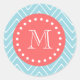 Sticker Rond Chevron bleu et corail avec Monogramme personnalis