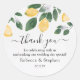 Ajoutez ces beaux stickers botaniques chics à vos mariages/douches nuptiales pour dire merci aux invités. Le design présente un effet texturé arrière - plan avec des agrumes tropicaux citrons jaunes d'aquarelle, fleurs de fleurs blanches et la végétation peinte à la main. Tout le texte est modifiable pour une personnalisation finale. Objets correspondants disponibles dans notre collection 'Citrus Summer'.
