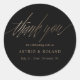 Cet autocollant simple et élégant de faveur de mariage présente un faux Merci métallique brillant sur un arrière - plan noir, ajoutant une touche élégante et personnelle à vos faveurs de mariage. Customisez avec vos noms et votre date de mariage pour créer un souvenir unique pour vos invités. Le design simple et sophistiqué s'inscrit parfaitement dans un thème mariage, ce qui en fait une belle touche de finition à votre journée spéciale.