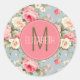 Sticker Rond Chic Chic Pink et Blue Cottage Rose Monogramme