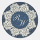 Sticker Rond Chic Denim & Ivoire Lace Monogram Mariage