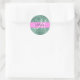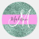 Chic et glam rose et verte parties scintillant scintille le nom de monogramme blanc et autocollant rond classique initial. Votre nom personnalisé et votre monogramme sont écrits dans un élégant script écrit à la main avec un arrière - plan rose. Vous pouvez modifier la couleur du texte, le style et la taille de police à l'aide de l'option personnaliser.