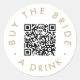 Cet or chic acheter à la mariée une boisson QR code autocollant circulaire ronde classique est parfait pour une simple fête de bachelorette ou douche nuptiale. Le design simple présente une typographie classique minimaliste d'or et de blanc, dans un style boho rustique. Personnalisable dans n'importe quelle couleur.