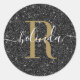 Sticker Rond Chic Gold Black Parties scintillant Nom du monogra