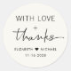 Chic crème légère sticker merci pour vos faveurs de réception de mariage et cartes de remerciement avec "With Love + Thanks" en typographie moderne simple et un script élégant, vos noms unis par un coeur et votre date mariage.