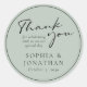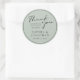 Chic Moderne Calligraphie Sage Green Wedding Favor Merci Sticker... Un autocollant chic de remerciement avec de la calligraphie moderne tendance pour avoir placé sur les faveurs de mariage à votre réception ou comme enveloppe scellée pour les cartes de remerciement post-mariage. Sur un arrière - plan vert sauge clair. Tous les textes sauf le graphique calligraphique peuvent être facilement révisés avec vos propres détails sur le modèle de personnalisation. Le texte de l'exemple s'affiche sur l'autocollant de 3 pouces.