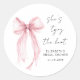 Sticker Rond Chic Nœud Rose Pastel Lavis Mariage