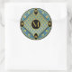 Un sticker ornemental art déco étonnant et intrigant avec un décor de ventilateur en or d'époque, turquoise et noir. Vous pouvez facilement personnaliser le monogramme au besoin. Un design original disponible exclusivement chez ©Oh_Nostalgia online store. Tous droits réservés.