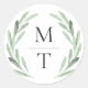 Sticker Rond Chic & Rustique Green Wreath Monogramme Mariage Fa