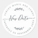 Sticker Rond Chic Script Nouveau Date Reportée Mariage Étiquett