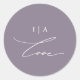 Un autocollant simple et chic, violet et blanc mariage, est doté d'une élégante calligraphie d'amour en écriture blanche, et d'un monogramme classique.