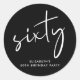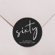 Sticker Rond Chic White Script Black 60th Birthday Party