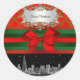Sticker Rond Chicago Skyline, Red Green Quatrefoil Xmas
