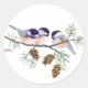 Sticker Rond CHICKADEES & PINECONES par SHARON SHARPE