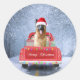 Sticker Rond Chien berger allemand en neige assis à Noël