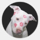 Sticker Rond Chien blanc amoureux, Scellé avec baisers en bâton