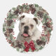 Regardez ce beau visage de Bulldog blanc encadré par un joli cône de pin aquarelle et une couronne de Fêtes aux baies rouges ! L'image du chien est au centre sur un arrière - plan blanc. Un arc rouge brillant donne un peu d'éclat de Noël à la couronne. Parfait pour vos forfaits vacances ou votre correspondance.