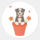 Sticker Rond Chien De Berger Australien En Pot De Fleurs
