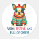 Sticker Rond Chien de Noël Chaud et Fuzzy