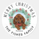 Mignons, autocollants avec chocolat brun / tan dachshund wiener chiot chien avec cadre de couronne de pin. Parfait pour la saison festive pour les amoureux de ces mignons petits chiens à pattes courtes en famille. Customisez en utilisant le modèle de texte.
