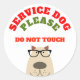 Très jolie illustration d'un Labrador Retriever portant des lunettes, Cette race est souvent utilisée par les personnes aveugles ou malvoyantes. Texte au-dessus de la tête du chien : "Service dog, s'il vous plaît ne touchez pas"