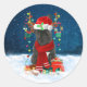 Sticker Rond Chien de taureau français en neige avec cadeaux de