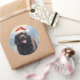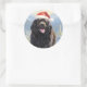 Le design coloré d'un chien de Terre-Neuve portant un chapeau de santa qui marche à travers les montagnes enneigées et souhaite un joyeux noël.