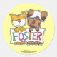 Sticker Rond Chien et chat tiennent une bannière FOSTER