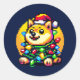 Sticker Rond Chien Festif - Joli Pixel Art lumières de Noël