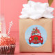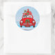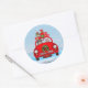 Sticker Rond Chien Havanais en voiture avec le Père Noël