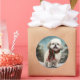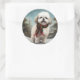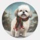 Sticker Rond Chien Malti Tzu à Noël de neige