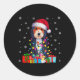 Sticker Rond Chien Moche Noël Lumières Santa Chapeau Bernedoodl