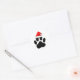 Empreinte de patte de chien de dessin en noir. Autocollants de Noël personnalisés. Version casquette du Père Noël. Idée cadeau pour les amoureux de les chiens.