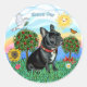 Sticker Rond Chien-taureau français (col noir-rouge)