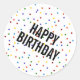 Sticker rond Motif classique avec points arc-en-ciel - Ces autocollants comportent un motif pois arc-en-ciel et les mots "Joyeux anniversaire" en gras.