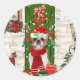 Chih Tzu Dog Noël assis à l'extérieur de la maison décorée avec la couronne de Noël, le sapin de Noël est une idée cadeau de Noël parfait pour les amoureux de les chiens.