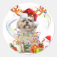 Sticker Rond Chih Tzu Christmas Reindeer | Lumières de Noël