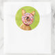 Sticker Rond Chihuahua Chig drôle avec saupoudrer la beigne sur