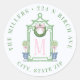 Cet autocollant a un design primitif et millénaire avec une pagode verte avec une couronne de Noël ornée d'un arc en vichy rose. De chaque côté se trouvent des topiaires dans des pots de Chinoiserie. Vous pouvez personnaliser avec votre initiale, nom et adresse.